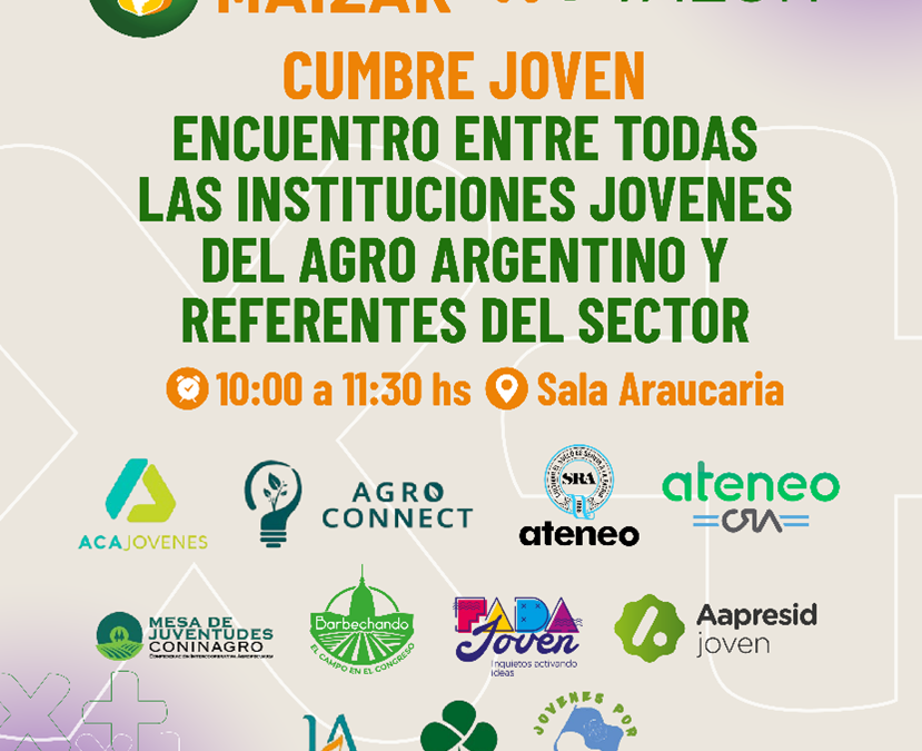 Buenos Aires, 27 de mayo de 2025. El Congreso Maizar 2025 será sede del primer gran encuentro de organizaciones de jóvenes ligados al agro. Serán once las instituciones que darán este primer paso: Jornaderos Agro, ACA Jóvenes, Agro Connect, Ateneo SRA, Ateneo CRA, Mesa de Juventudes de Coninagro, Barbechando, Fada Joven, Aapresid Joven, LAI (Línea Agronomía Independiente) y Jóvenes por el Clima.